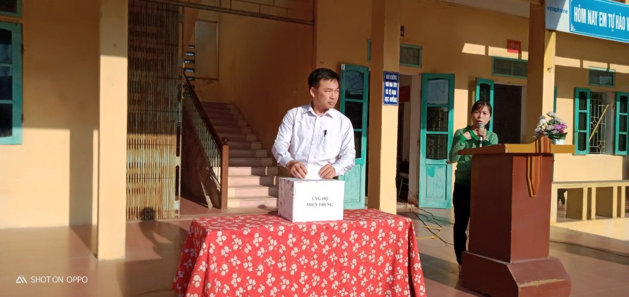 ( Thầy Hiệu trưởng thay mặt các thầy cô giáo tham gia ủng hộ)